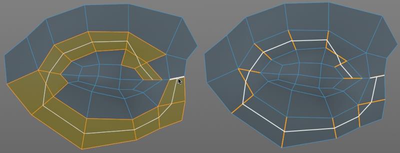 Eine Kantenselektion sollte so aussehen, wie es das Werkzeug Ring-Selektion im Kantenmodus vornimmt.