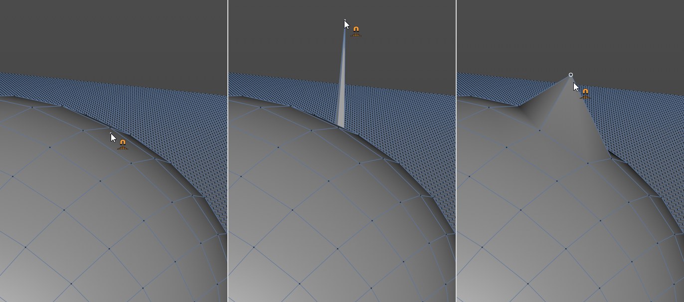 Zieht das Mesh in Richtung der Mausbewegung (das ist das von früheren Cinema 4D Versionen gewohnte Verhalten für den Magnet).