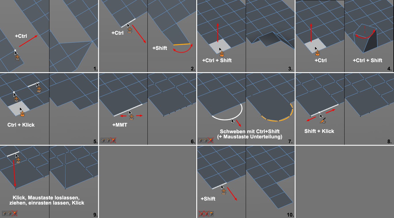 Dabei funktionieren folgende Tastaturkürzel (entsprechende Werkzeug-Cursor werden jeweils in der Ansicht angezeigt):
