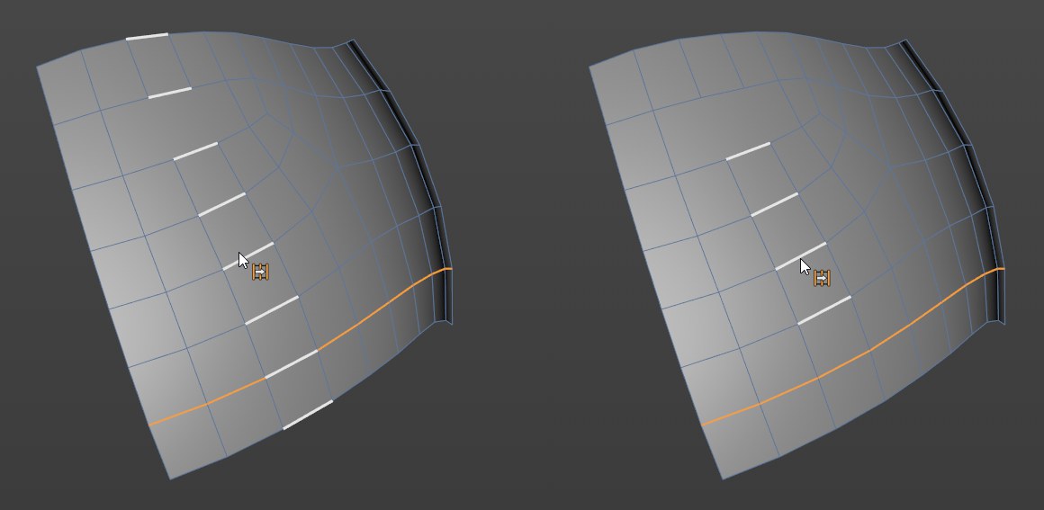 Bei aktivierter Option stoppt die Ring-Selektion an Polen. Was ist ein Pol? Für die Ring-Selektion ist im Gegensatz zur Loop-Selektion ein Pol ein Punkt, der nur von Dreiecken umgeben ist (wie z.B. der Nordpol einer Kugel).