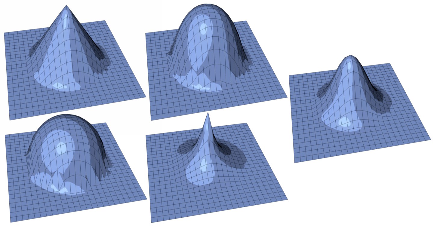 Im Uhrzeigersinn die Abnahmeformen Linear. Kuppel,