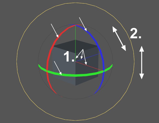 Indem Sie die Rotationsbänder/Achsen mit der Maus anfassen, kann entsprechend gedreht werden.