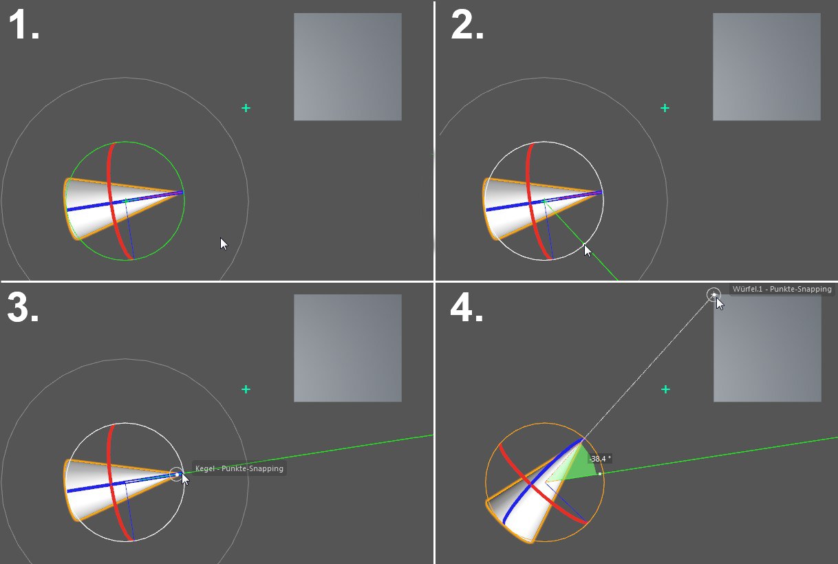 werden. Betrachten Sie sich einmal obiges Beispiel: ein Kegel soll auf die Ecke eines Würfels ausgerichtet