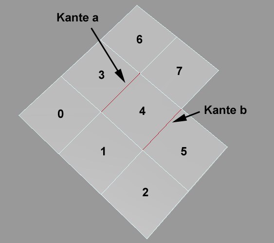 Kante b wird hingegen nicht davon betroffen, da die Polygone 5 und 7 getrennt sind. Dies klingt komplizierter als es ist; probieren Sie es einfach im Editor aus, Sie werden feststellen, dass die Angelegenheit doch relativ intuitiv ist.