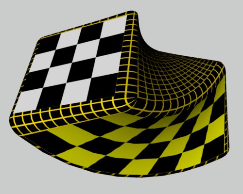 Spat-Mapping ist für Bild-Motive (oder wie hier die Gittertextur) weniger geeignet, da es zu Verzerrungen kommt, und sollte daher eher für Struktur-Texturen (z.B. Putz, Marmor, ...) verwendet werden.