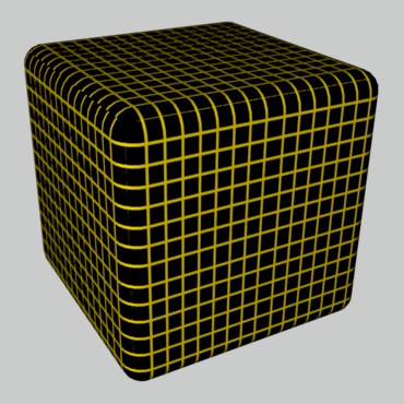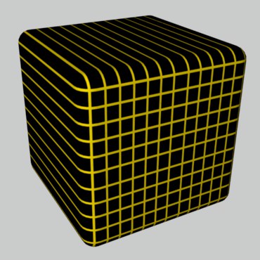 Wenn Sie diese Projektionsart einstellen, wird die Textur auf alle sechs Seiten eines Textur-Würfels gelegt. Anhand der Flächen-Normale eines Objektes wird bestimmt, welche der Polygon-Seiten (je nachdem, ob die Normalen nach innen oder außen zeigen) zur Projektion genommen wird.