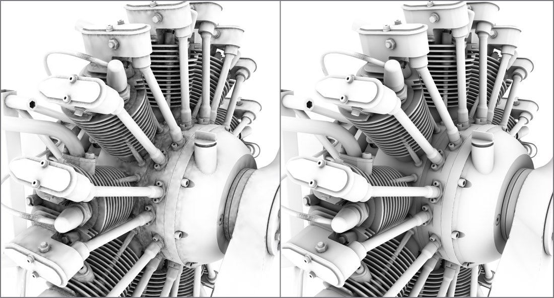 Wenn Sie die Option aktivieren, wird die Shadingpunktdichte an die Ausgabegröße gekoppelt.Das führt zu insgesamt flexiblerer und angepasster Shadingpunktdichte.