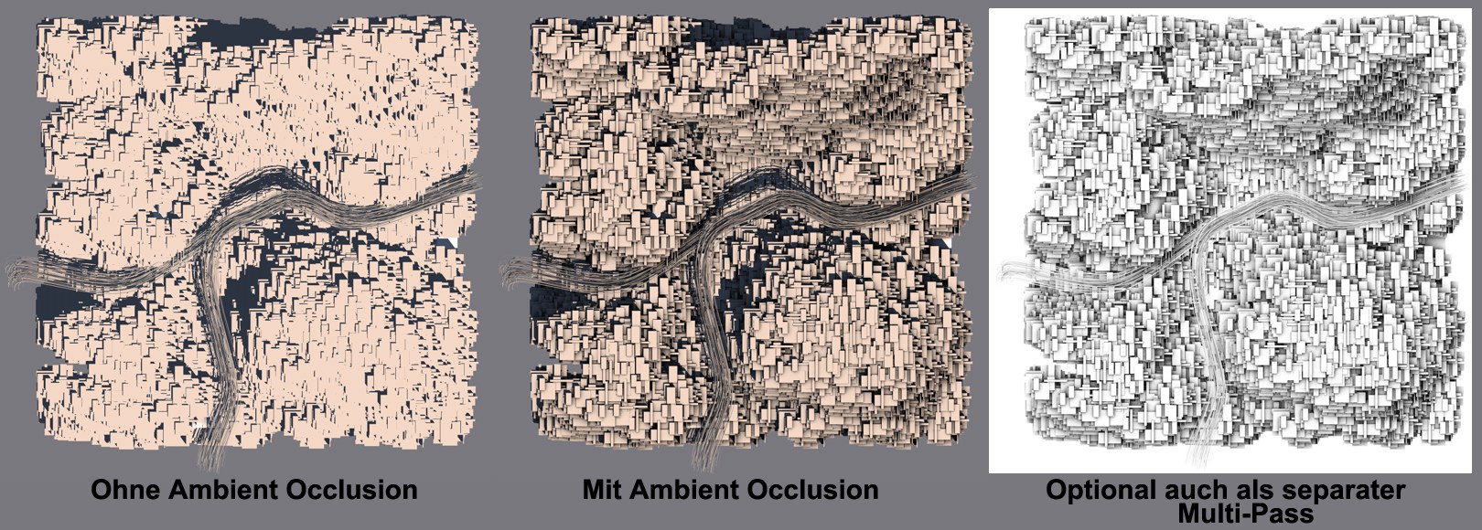 Links ohne, Mitte mit "Ambient Occlusion"