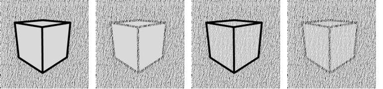 selbe Textur als Alpha-Textur mit aktivierten Linien, 3: Mit aktivierten Objekten, 4: Mit aktivierten Linien