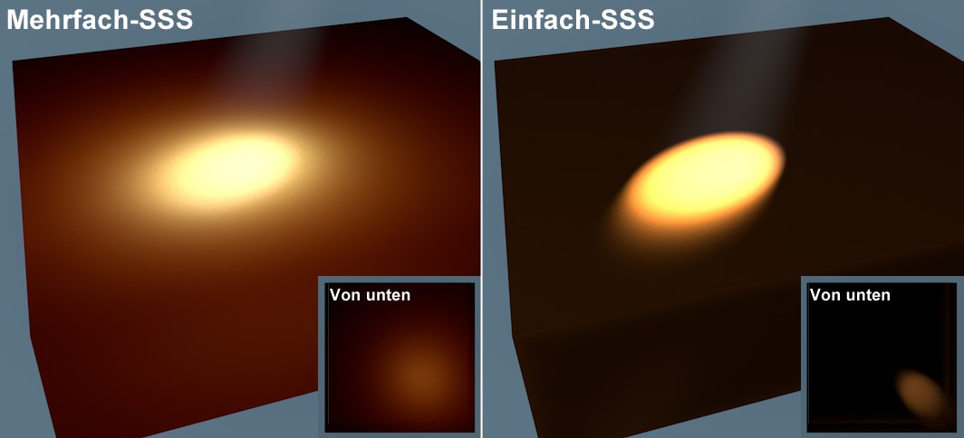 Ansonsten kann es durchaus zu Artefakten (auch beim Angrenzen verschiedener SSS-Materialien auf einem Objekt) kommen. In diesem Fall deaktivieren Sie die Option.