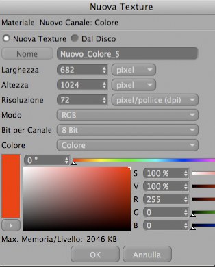 Qui scegliete la modalità colore usata dalla texture (scala di grigi o RGB).