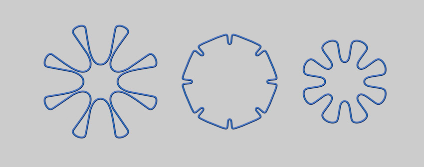 Hier sehen Sie einige der möglichen Formen, die sich mit dem Blume-Node erstellen lassen.