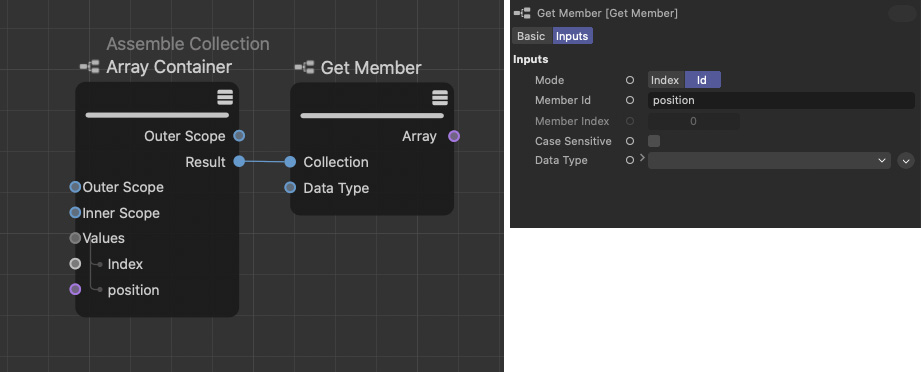 Diese Funktion ließt es bestimmtes Array aus einer Sammlung aus, die z. B. mit einem "Sammlung zusammensetzen"-Node erstellt wurde.