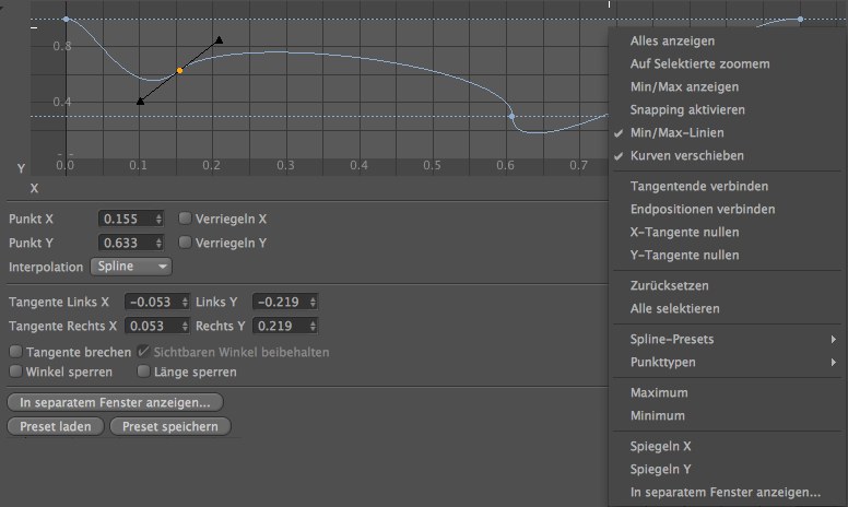 Sollten die aktivierten Parameter Animations-Spuren besitzen, so werden sie bei Aufruf dieser Funktion gelöscht. Ersatzweise können Sie auch mit gedrückter Shift+Ctrl/Cmd-Taste auf das kleine Kreissymbol links neben dem Parameternamen klicken.