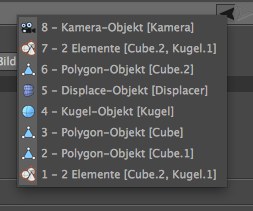 Ansonsten kann auf ein Listenobjekt doppelgeklickt werden, um seine Eigenschaften im Attribute-Manager anzuzeigen.