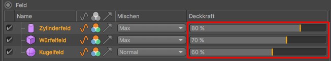 Alle hell unterlegten Parameter-Gruppen werden weiter unten im Attribute-Manager vollständig angezeigt und können dort verändert werden.