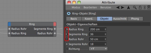 Gesetzte Ports für Elementparameter werden übrigens auch im Attribute-Manager folgendermaßen markiert: