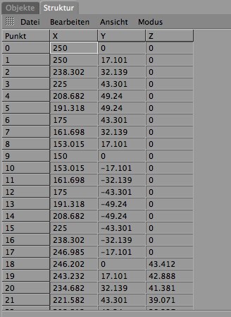 Felder lassen sich direkt editieren, Zeilen mittels Drag & Drop umsortieren und Elemente mit Ausschneiden, Kopieren und Einfügen bearbeiten. Größere Datenmengen lassen sich schnell bearbeiten, besonders wenn das Objekt sehr viele Punkte oder Polygone besitzen sollte. Der Selektionsrahmen (ein roter Rahmen um ein aktives Feld) zeigt Ihnen, welche Daten Sie gerade bearbeiten können. Die Navigation in der Liste wird dadurch sehr einfach.