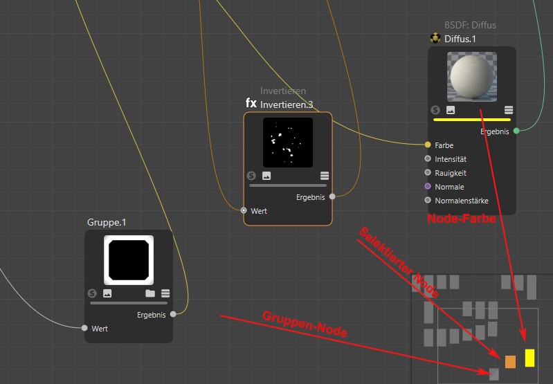 - Eingefärbte Nodes (Tab "Basis") werden mit identischer Farbe angezeigt.