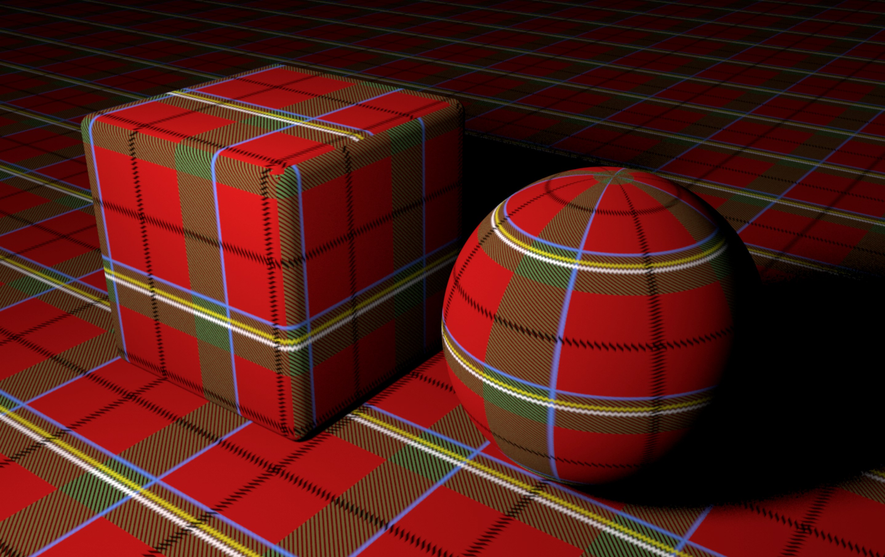Sie können hier ansatzweise erkennen, was mit Nodes möglich ist. Rechtsklicken Sie auf das Material und wählen Sie Node-Editor, um einen Blick in die Node-Schaltung zu werfen. Beachten Sie den "Plaid"-Gruppen-Node, in diesem verbergen sich weitere Node-Schaltungen.