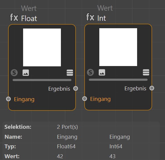 Der Port-Inspektor kann für jeden Port statische Werte anzeigen. Er funktioniert am besten, wenn der entsprechende Port mit anderen Nodes verknüpft ist (er zeigt dann z.B. auch animierte Farben an).
