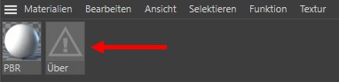 Node-Materialien, die für den aktuellen Node Space nicht geeignet sind, werden im Material-Manager mit einem Warnzeichen versehen (und würden schwarz gerendert):