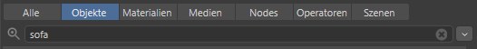 Oben in der Form von Tabs finden Sie den Schnellfilter. Klicken Sie auf eines der Tabs, um nur diesen entsprechenden Asset-Typ einzublenden. Sie können hier also eine Vorauswahl (s.a. Autoumschaltung) treffen, die die folgende Suchzeile weiter einschränkt.