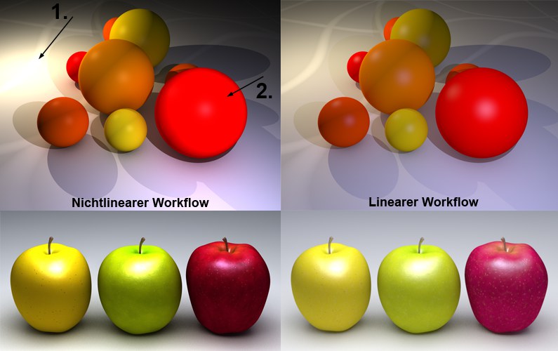 Der ganze Themenkomplex Gammawert und dem damit einhergehenden LWF ist der einfachen Tatsache geschuldet, dass ein Renderer intern mit linearem Gamma (= 1) rechnet, er aber als Input (Texturen, Shader etc.) mit einem anderen Gamma (meist 2.2, seit macOS 10.6 auch für Mac-Benutzer, vorher 1.8) gefüttert wird, obwohl er ebenfalls Gamma = 1 erwartet.