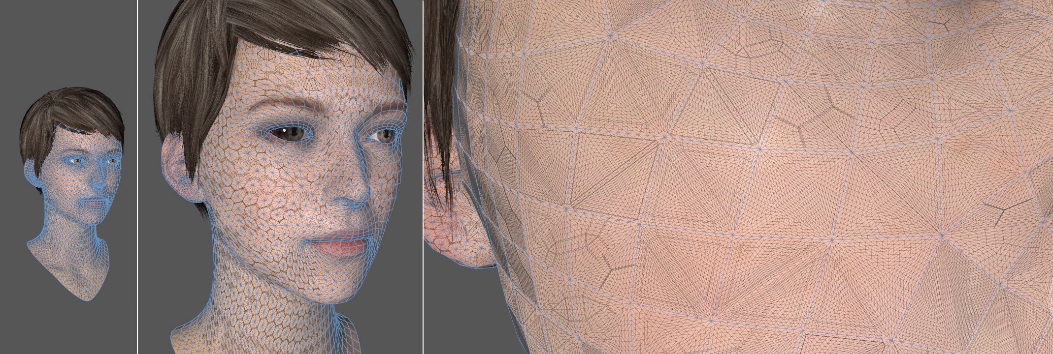 Das materialtragende Objekt wird gleichmäßig – d.h. unabhängig von der Kameraentfernung – gleich stark tesselliert. Gleichmäßige Stufen ist dabei ein Maß für die Anzahl der Unterteilungen.