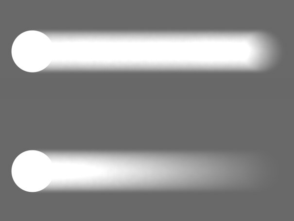 Bei aktivierter Option Gewichteter Schweif kommt ein anderer Algorithmus zum Einsatz, der das VBU nicht ganz korrekt berechnet, sondern den Schweif zum Ende hin immer durchsichtiger werden lässt.