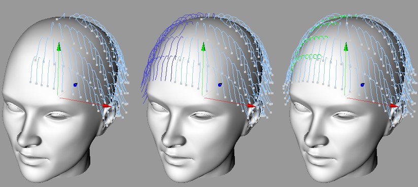 Hierbei werden Guides durch Interpolation zwischen vorhandenen Splinesegmenten erzeugt. Diese Guides können nicht mit den Werkzeugen frisiert werden.