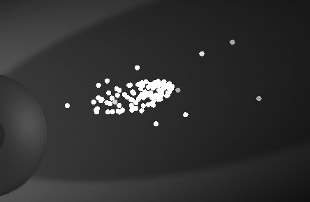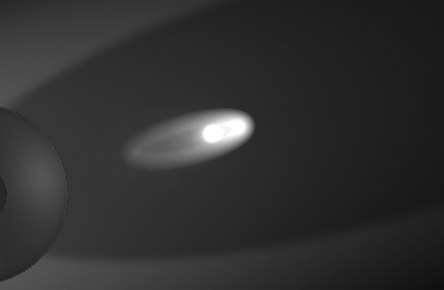 Stellen Sie sich in Gedanken eine weitaus größere Anzahl an Photonen vor. Diese sind dann allerdings nicht so hell wie im obigen (übertriebenen) Beispiel. Nach der Interpolation der Photonen-Helligkeit ergibt sich dann schließlich der gewünschte Caustic-Effekt.