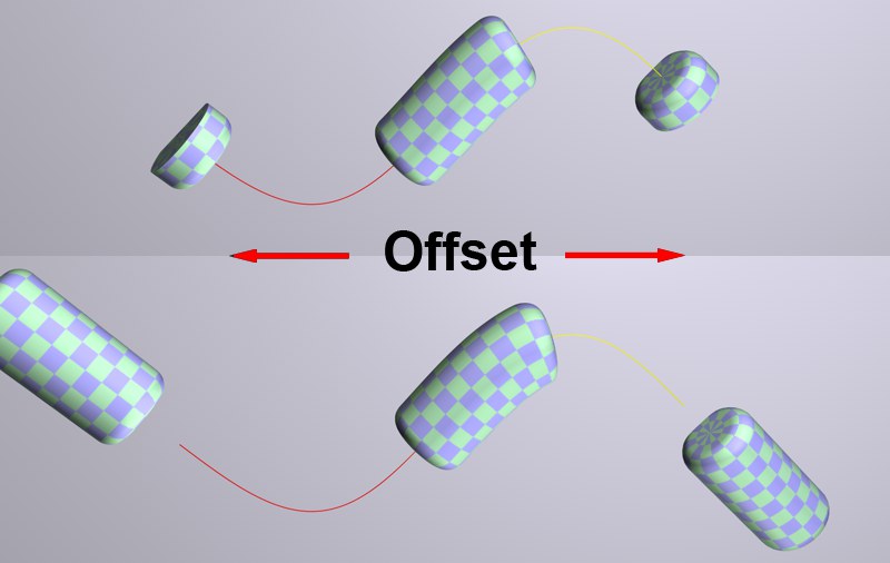 Wenn Sie durch Variation von Offset das zu verformende Objekt über die Splineenden bewegen, gilt dafür: