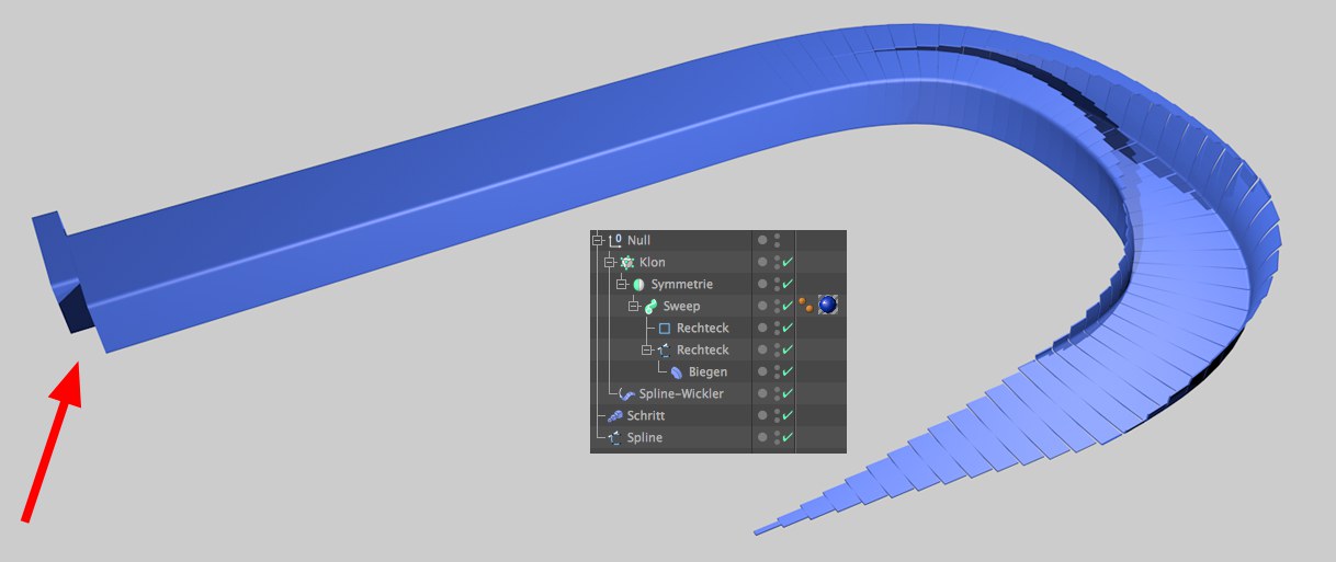 Das zu verformende Objekt wird an die Splinelänge angepasst.