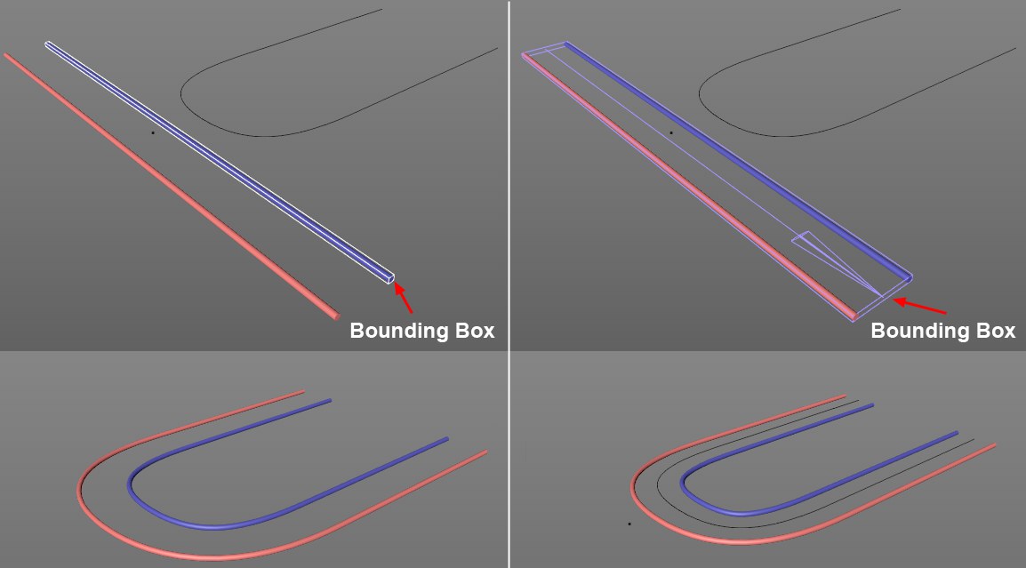 Gelegentlich kann es vorkommen, dass es beim Öffnen der Szene auf anderen Rechnern oder beim Rendern über Team Render zu unerwünschten Effekten beim Interpretieren der gemeinsamen Bounding Box kommt (besonders wenn mehrere zu verformende Objekt animiert sind).