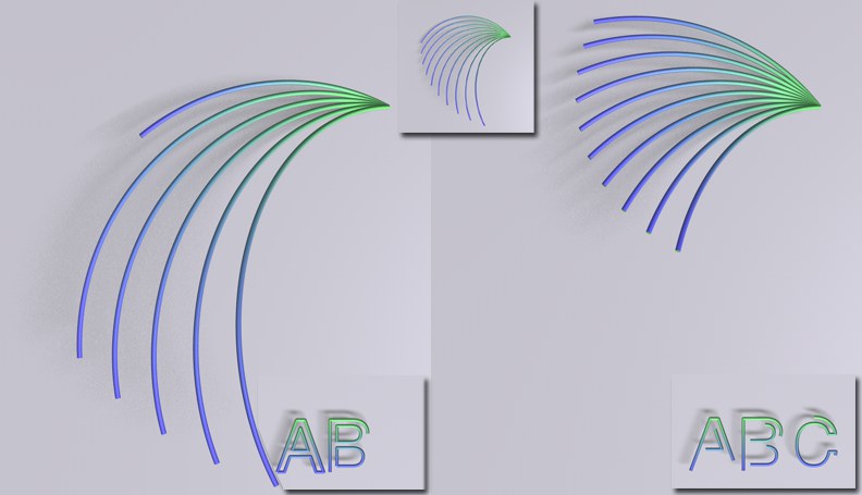 Aus dem Splineursprung wachsen fächerartige Splinesegmente, die mit allerlei Parametern verbogen und angeordnet werden können. Details dazu finden Sie in den Beschreibungen des Tabs "Einfach".