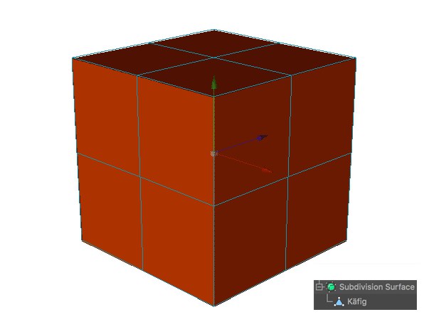 Das Subdivision Surface und der Käfig sind zu sehen.