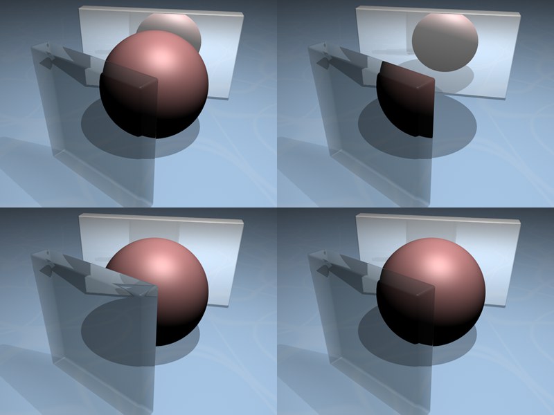 Manchmal ist es gewünscht, dass Objekte selbst sichtbar, aber seine Spiegelung unsichtbar sein soll. Oder der Schattenwurf soll gerendert werden, während das schattenwerfende Objekt selbst unsichtbar ist. Alle diese eigentlich in der Realität unmöglichen Zustände können hiermit erreicht werden.