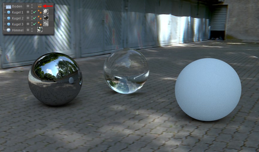 Und als letztes noch eine Option für die Spiegelung: Wird die Option deaktiviert, ist das Objekt mit dieser Render-Tag-Einstellung in spiegelnden Objekten nicht mehr sichtbar.