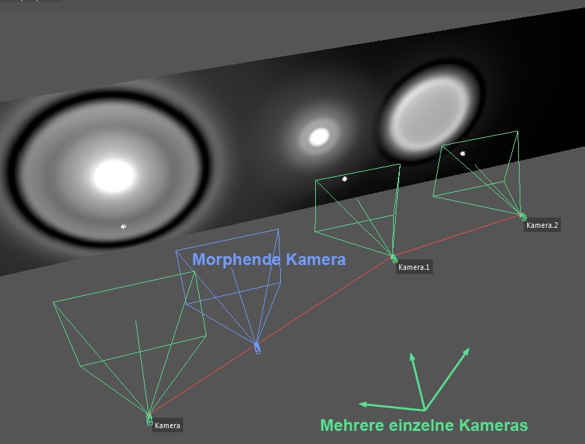 Mit diesem Befehl (dazu müssen mindestens 2 Kameras selektiert sein, zwischen denen eine neue erzeugte Kamera dann morpht) erzeugen Sie folgenden Kameraaufbau:
