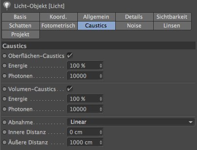 Hier finden Sie die globalen Parameter, um Photonen-Caustics zu definieren. -