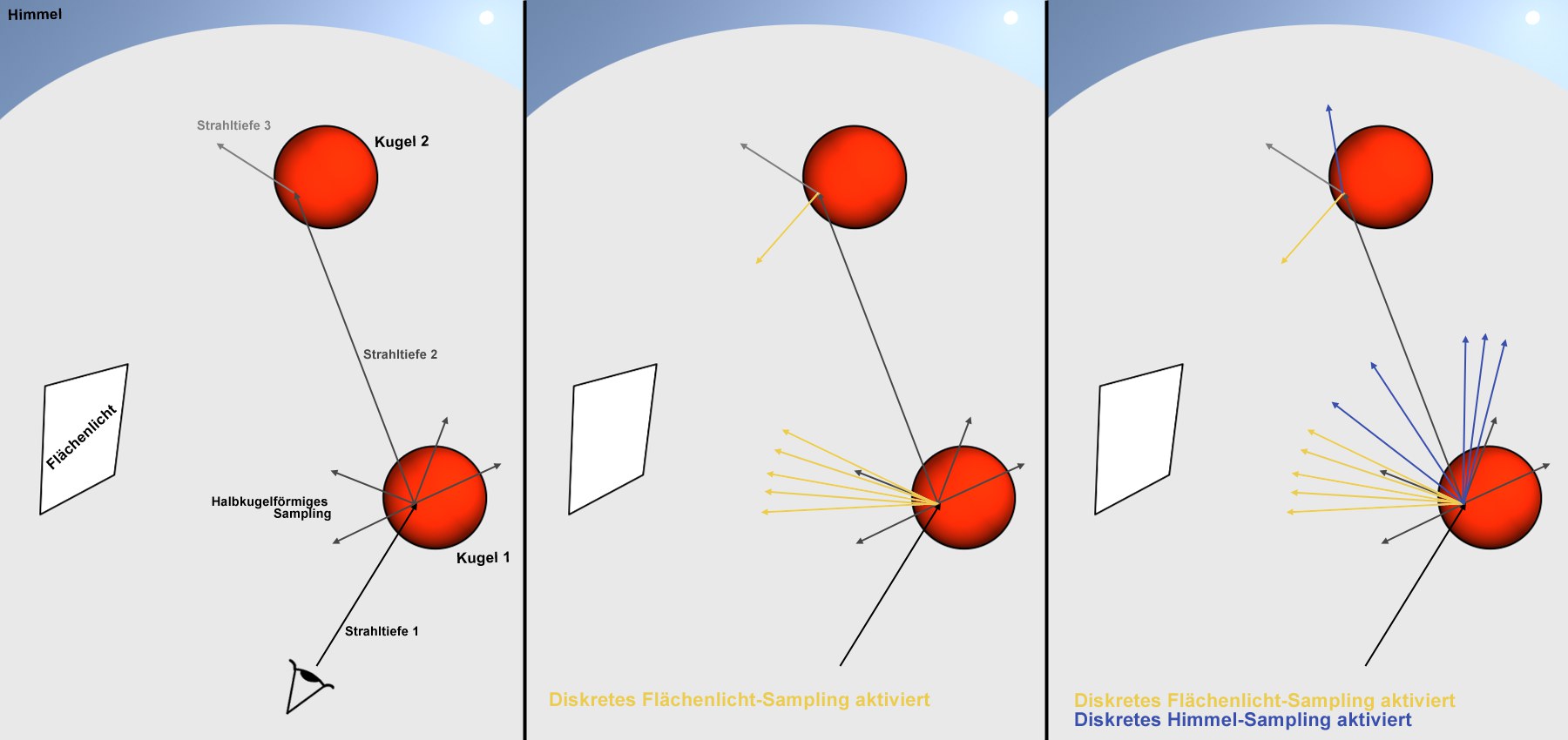 Die im Folgenden beschriebenen Sampling-Einstellungen bestimmen primär dann nur noch, ob und wie viele Strahlen an "Kugel 1" erzeugt werden.