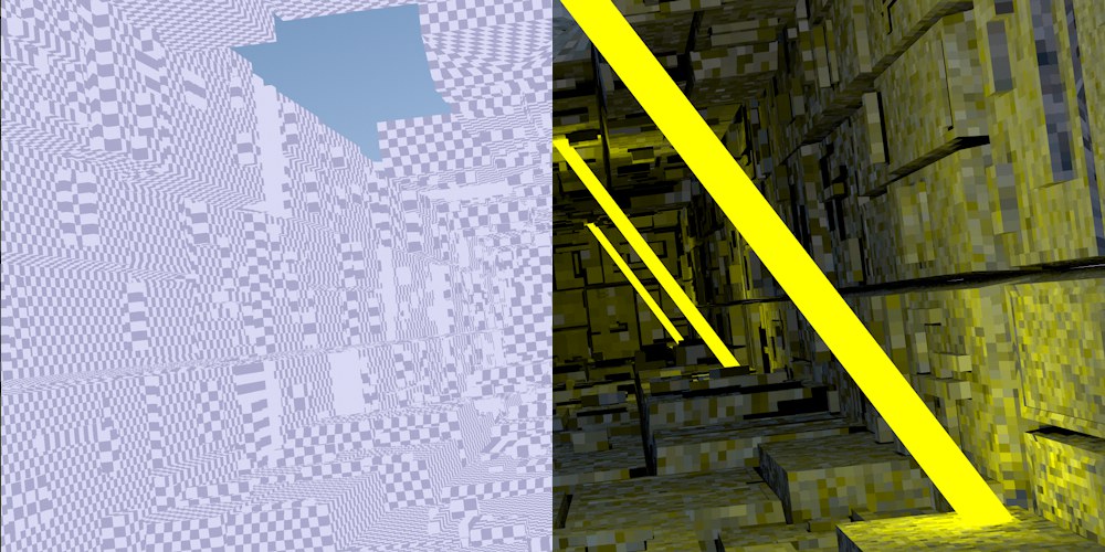 Sie können die Texel ohne aufwendige Berechnung sichtbar machen, wenn Sie bei Modus Texel anzeigen einstellen und rendern.