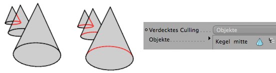 Unterobjekte-Modus, Selbst-Culling links deaktiviert, rechts aktiviert.