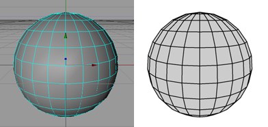Die Kugel hat keine Kanten (Phong), weil Ihre Kanten von einem Phong-Tag geglättet werden. Der Würfel hat ganz klare Phong-Kanten, sofern bei seiner Winkelbeschränkung (im Phong-Tag) maximal 89° definiert sind.