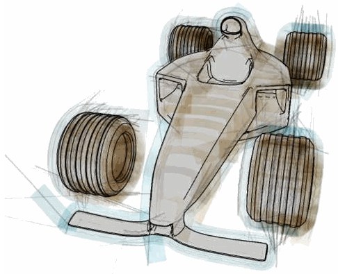 Konturlinien helfen, die Form eines Objekts anzuzeigen. Sie sind im Besonderen sinnvoll, wenn sie in einem dicken Marker-Stil (wie bei dem Rennauto unten) gerendert werden. Es gibt 3 Modi für Konturlinien: