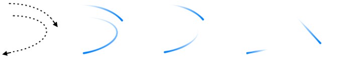 Ausgehend von den Linien, die für das Objekt erstellt werden (z.B. Falten, Kanten oder Splines, Isoparme funktionieren nicht), werden Formen entlang der Bewegungslinien gebildet. Dies kann man vielleicht als eine Art Bewegungsunschärfe (es wird aber nichts weichgezeichnet) bezeichnen, da es eine Spur hinterlässt.