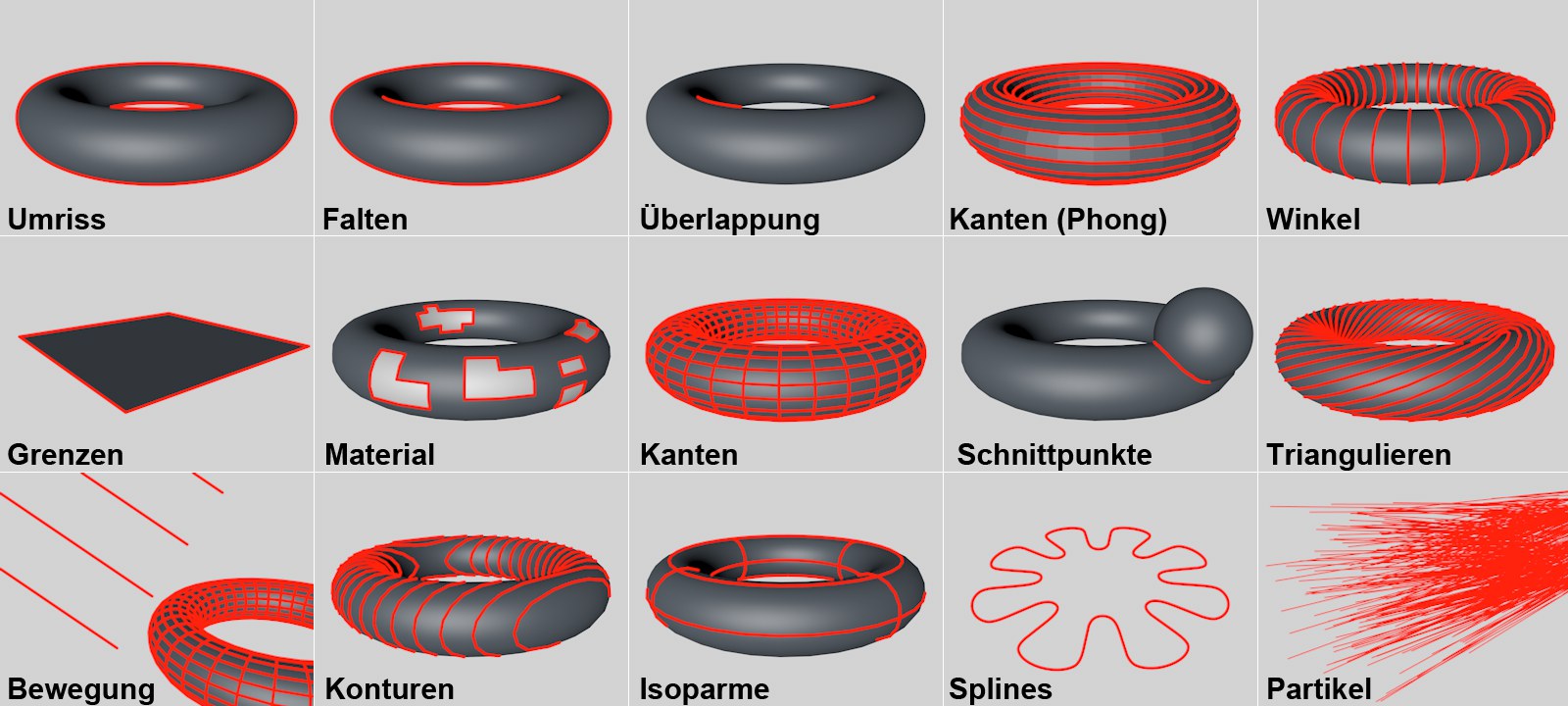 - Winkel: rendert Linien, die den gleichen Winkel von der Oberflächennormalen zu einer wählbaren Achse haben.