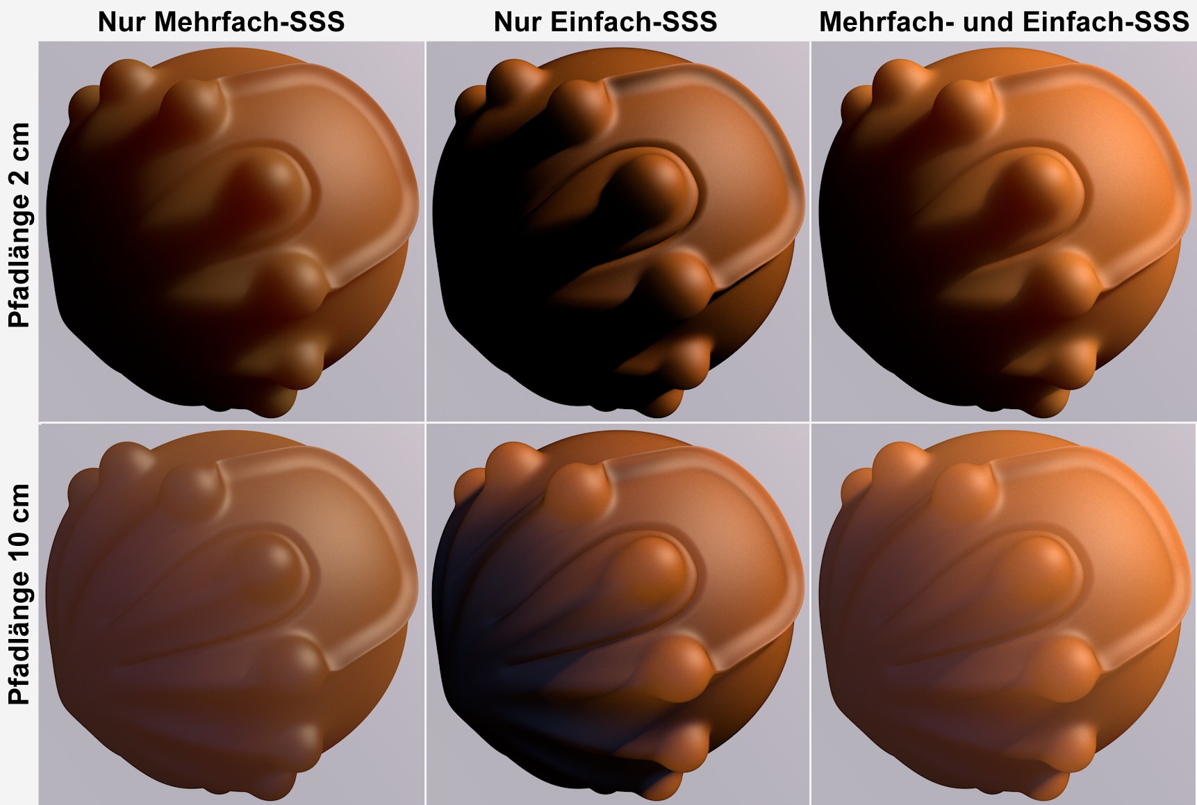 Es gibt in CINEMA 4D zwei Methoden zur Berechnung des SSS: