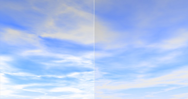 This is the most important cloud setting. With it you define the degree of cloud coverage. Very low values result in no cloud coverage; very high values result in a completely overcast sky.